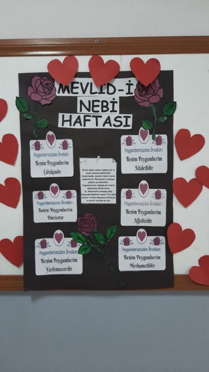 Âlemlere rahmet olarak gönderilen Sevgili Peygamberimiz Hz. Muhammed Mustafa’nın (s.a.s.) dünyaya teşriflerinin yıldönümünü idrak ettiğimiz Mevlid-i Nebi Haftası kapsamında Okulumuz öğrencileri tarafından program düzenlendi.Programın ardından kolonya ve lokum ikramı ile sona erdi. Programın düzenlenmesinde katkısı olan Değerler Kulübü ve Müzik Kulübü danışman öğretmenlerimize ve öğrencilerimize teşekkür ederiz.