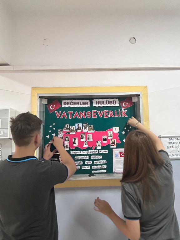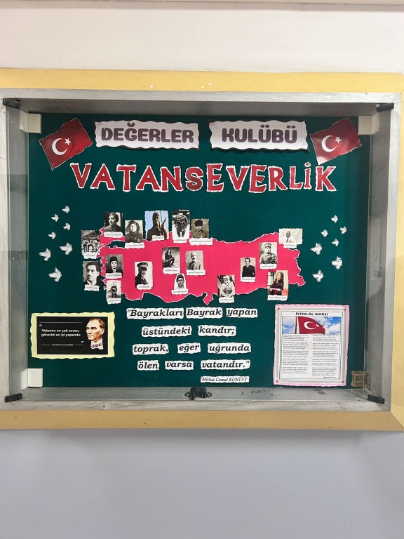 OKULUMUZ DEĞERLER KULÜBÜ TARAFINDAN ''VATANSEVERLİK'' PANOSU DÜZENLENDİ.